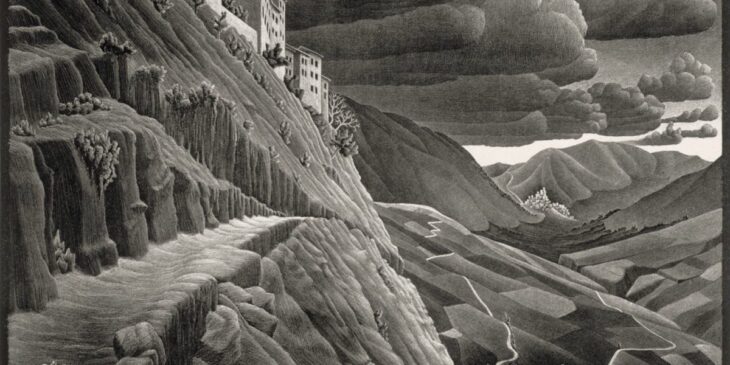 Maurits Escher vond de inspiratie voor zijn mathematische oeuvre in de weidse landschappen van Italië, toont een expositie in Leeuwarden over de reizen van de graficus.
