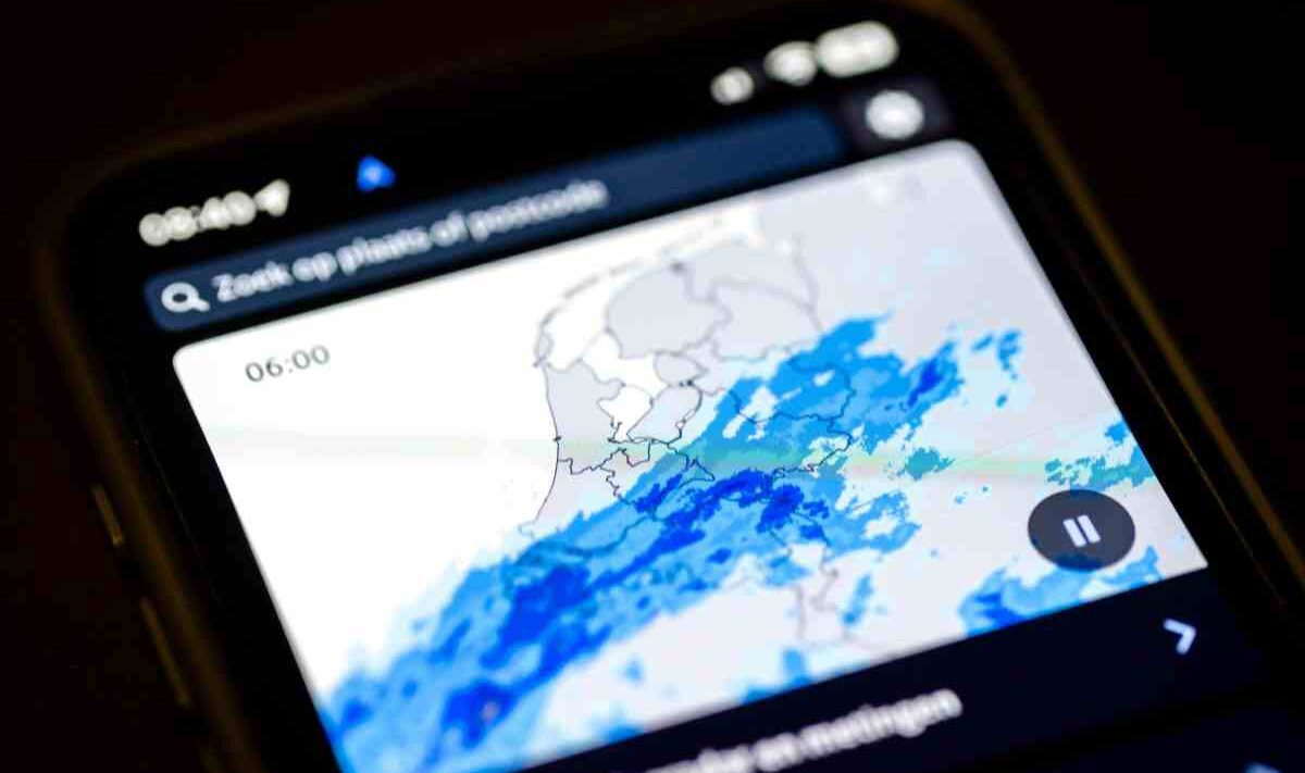 De weerapp van het KNMI waar gebruikers het lokale weerbericht zien en radarbeelden bekijken. (Foto: ANP)
