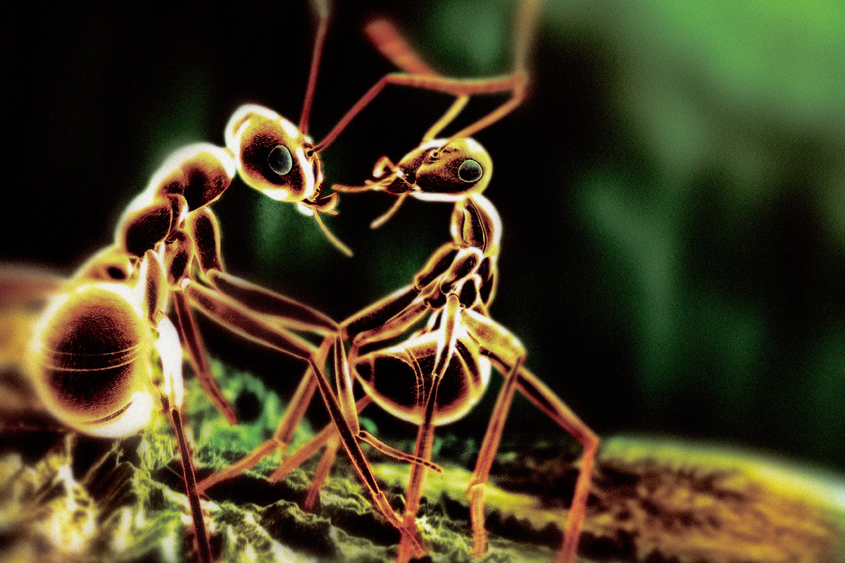 Mieren behoren tot de sociaalste dieren op aarde. Ze verzorgen met zijn allen de kleintjes, ze gaan samen op zoek naar voedsel – dat ze met de hele groep delen – en ze verdedigen zich en masse tegen andere stammen.