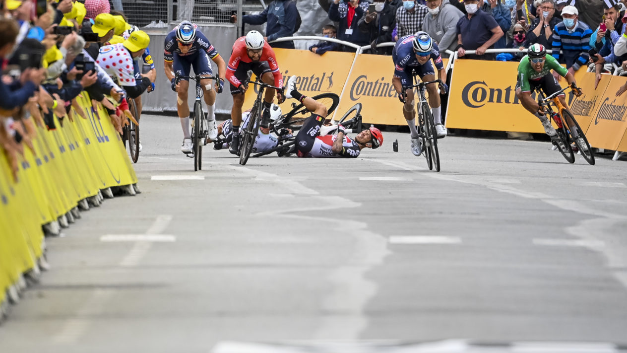Zeker, het gaat om goedbetaalde profs, die bewust risico’s nemen. Stuurvaardigheid hoort bij hun vak. Wie valt, moet niet mekkeren, want wielrennen is ook de kunst om op je fiets te blijven zitten. Maar het wielrennen is ook een spektakelsport en bij organisatoren speelt dat mee. In de Ronde van Polen kwam vorig jaar in het gedrang van een etappesprint Fabio Jakobsen ten val. Rivaal Dylan Groenewegen had hem niet klem mogen rijden, maar de eerste fout was toch die van de organisatie. In de zucht om ‘de snelste sprint van het jaar’ te bekokstoven, was de finishstreep in een afdaling getrokken.