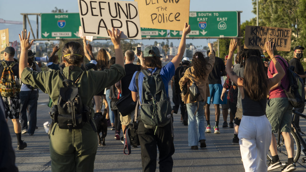 In 2020 waren Amerikaanse steden opnieuw het symbool van onrust. Massale demonstraties ontstonden nadat een onschuldige zwarte Amerikaan werd gedood door een politieagent. De Black Lives Matter-beweging riep op tot Defund the Police (bezuinig op de politie). Linkse Democraten namen de leus over en voerden er campagne mee. Zo zei Congreslid Alexandria Ocasio-Cortez dat geld bestemd voor politiekorpsen naar onderwijs moest gaan.